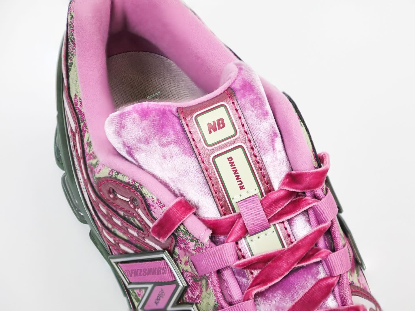 The Jack Harlow x New Balance 1906R features a Beige base layer with a floral print. The leather overlays will be found in Pink/White, with the rear TPU cage in a Dark Green hue. The inner lining, laces, and New Balance "N" logo will also be found in a matching Pink hue. Finishing off the look, we'll see a simple Green rubber sole alongside custom-designed insoles.