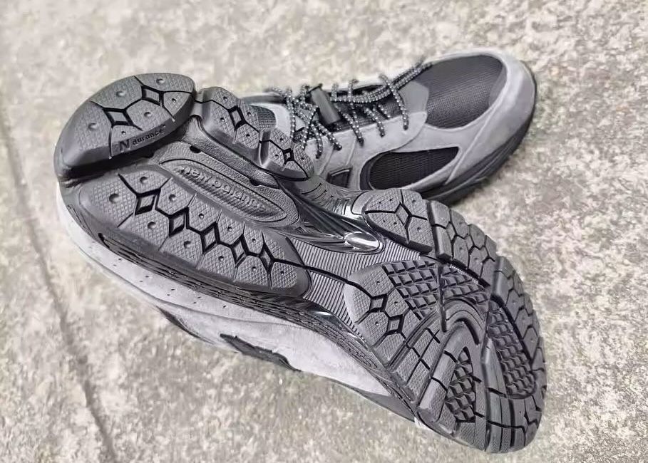 Employing a fusion of suede, mesh, and leather, this rendition highlights the robustness of GORE-TEX treatment, ensuring weather-resistant functionality. The shoe predominantly features a Black foundation complemented by Light Grey overlays, creating a harmonious collaboration-inspired design. Finishing touches of darker shades grace the "N" logos, heel tabs, and lace lock, delivering a distinctive aesthetic, all resting atop a resilient Black rubber sole.