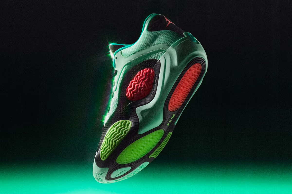 The Jordan Tatum 2 “Vortex” features bright color palettes including Mint Foam, Lava Glow, Black, Hyper Jade, and Key Lime hues. The upper will be found with a breathable mesh base layer, and leather overlays in a consistent Green hue. The tongue, laces, and heel will be found in a sleek Black, with Hyper Pink accents found on the "JT" logo on the tongue and the Jumpman logo on the heel. We'll also find the large textile pods on the lateral side, overlaying the midsole. Found in Hyper Pink and Volt, these pods not only provide for a unique aesthetic but also provide for superior stability. Finishing off the look, we'll find the sole finished off in a matching Green hue to the rest of the upper.