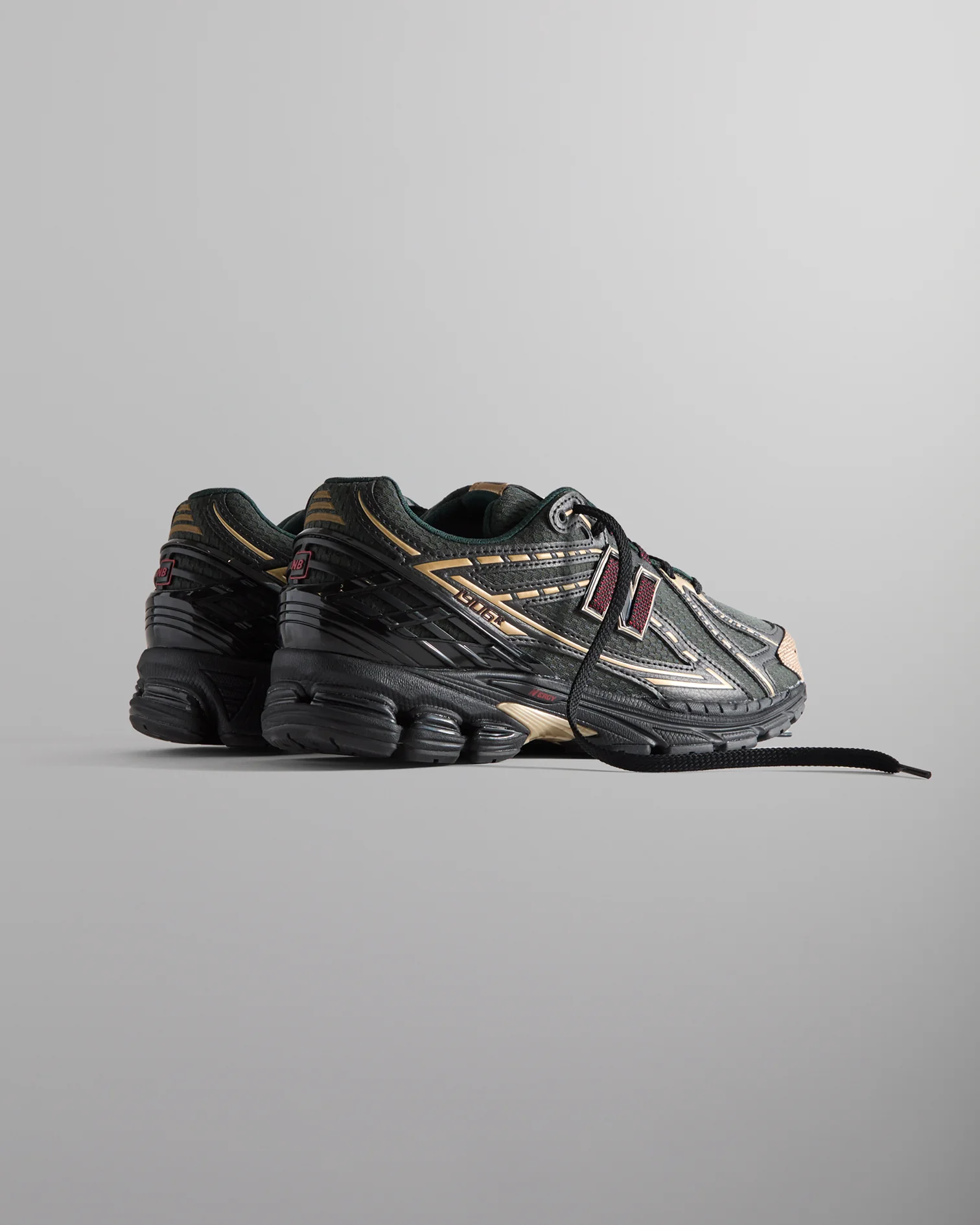 The Kith x New Balance 1906R features a darker look, featuring a blend of black, gold, and burgundy hues. The mesh upper will be found in a dark tone, with metallic gold accents found on the overlays. Hints of burgundy will be found on the New Balance "N" and 1906R branding. To finish the look, the sole will be blacked out with metallic gold and burgundy hues in the center. Stay tuned for further updates regarding this release in the coming months!