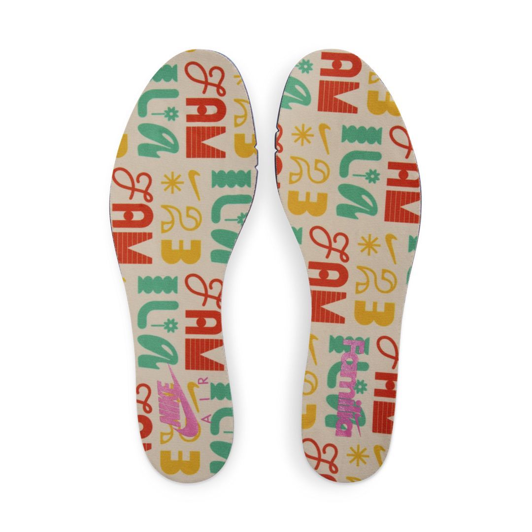 The Nike Air Max 1 "Familia" will feature a unique design featuring a mix of colors and materials. The upper will be found mainly in smooth leather in tan, with red and yellow accent layers across the layer. The mudguard and Nike Swoosh will be found in pink suede, with the lining above in green. The midsole will be finished in sail, with a multicolored rubber outsole. Upon a closer look, you'll also find a Familia-themed logo on the tongue, custom insoles, and a special message showcasing the craftsmanship and quality of this sneaker on the inside of the tongue tab.
