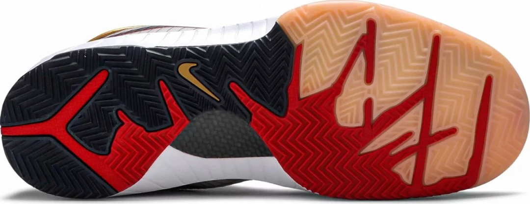 The Nike Kobe 4 Protro "Gold Medal” retains the essence of the 2009 classic, featuring a color scheme of White, Dark Obsidian, Varsity Red, and Metallic Gold, perfectly reminiscent of its predecessor. Standout features include Metallic Gold accents around the toe and heel, bearing a snakeskin texture that adds a touch of luxury. Dark Obsidian takes its place on the Swoosh logos, liner, and mesh tongues, while more Gold graces the Kobe shield logo. A tribute to Kobe Bryant's role as Team Captain of the "Redeem Team," his Olympic number "10" is proudly stamped onto the heels, alongside his signature on the lateral side. White panels with Obsidian FlyWire provide a balanced and stylish contrast. The insoles sport depictions of Olympic medals along with the memorable date "08.24.08." The design concludes with crisp White midsoles and a rubber outsole featuring a mix of the aforementioned shades