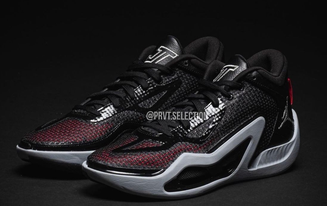 The lightweight hoop shoe is cloaked in a mostly black upper with a silver TPU frame that has become the hallmark of the Jordan Tatum 1. The Old School does give off some mild Bred vibes as it transitions to a red underlay on the mesh-based toebox. The kicks also have a red heel tab and silver logos of the Jumpman and Tatum signature JT on the tongue.